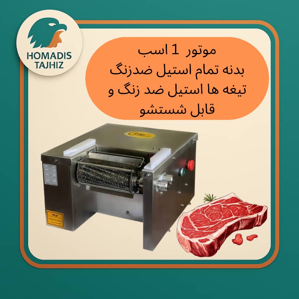 دستگاه استیک زن جهت ریز کردن قطعه های بدون استخوان گوشت یا کوبیدن گوشت، مرغ، گوسفند، یا .. دارد